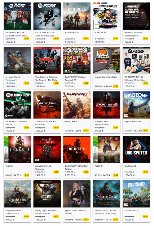 | EA Sports FC 26 | 2.899,99 TL | 1.159,99 TL | %60 | Yeni sezon için kadro kurmanın tam vakti |